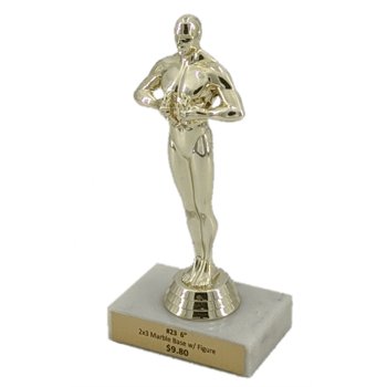 Store / Trophy Award / 2 x 3 Marble Base with Choice of Figure 2 x 3 Marble Base with Choice of Figure$10.80 This trophy consists of your choice of a gold figure mounted on a 2″ x 3″ marble base. It also comes with a gold plate for your engraving. Bulk Pricing 1 - 9 10 - 24 25 - 49 50 - 99 100 - 249 250 - 500 $10.80 $10.26 $9.72 $9.18 $8.64 $8.10 Engraving Instructions 2 x 3 Marble Base with Choice of Figure quantity Add to cart SKU: 23 Category: Trophy Award Tags: FIGURE, GOLD, TROPHY Related products 591 SERIES TROPHY WITH FIGURE $19.25 – $23.65Price range: $19.25 through $23.65 View product This product has multiple variants. The options may be chosen on the product page 593 SERIES TROPHY WITH FIGURE AND 2 TRIMS $30.95 – $34.25Price range: $30.95 through $34.25 View product This product has multiple variants. The options may be chosen on the product page 3×3 Marble Base w/ Medallion Riser 1.5″ medal $20.50 View product 13″ Star Casting on Rosewood Piano Finish Base $116.85 View product