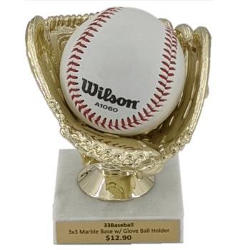 Store / Trophy Award / 3×3 Marble Base w/ Baseball “Glove” Holder 3×3 Marble Base w/ Baseball “Glove” Holder$16.75 A stylish gold glove on a 3×3 marble base holds a baseball and has a gold engraving plate. Also available for softball. (Ball NOT included) Bulk Pricing 1 - 9 10 - 24 25 - 49 50 - 99 100 - 249 250 - 500 $16.75 $15.91 $15.08 $14.24 $13.40 $12.56 Engraving Instructions 3x3 Marble Base w/ Baseball "Glove" Holder quantity Add to cart SKU: 33Baseball Category: Trophy Award Tags: BASEBALL, GLOVE, GOLD, HOLDER Related products Wood Column Trophy $18.15 – $20.80Price range: $18.15 through $20.80 View product This product has multiple variants. The options may be chosen on the product page 2 x 3 Marble Base with Choice of Figure $10.80 View product 6-1/2″ Superstar Basketball Female $23.80 View product 593 SERIES TROPHY WITH FIGURE AND 2 TRIMS $30.95 – $34.25Price range: $30.95 through $34.25 View product This product has multiple variants. The options may be chosen on the product page