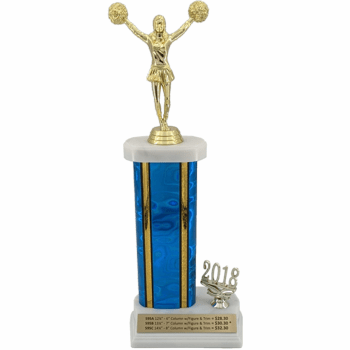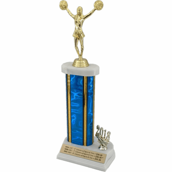 This trophy comes with your choice of figure, column color, and trim. It also comes with a gold plate that is customizable with your engraving.