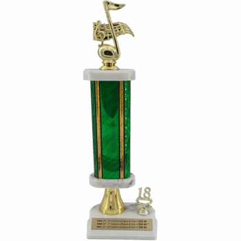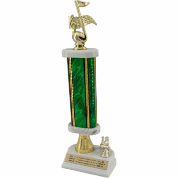 This trophy comes with your choice of figure, column color, and trim. It also comes with a gold plate that is customizable with your engraving.