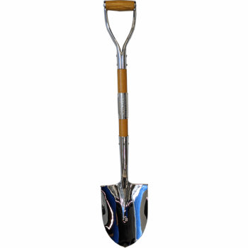 This polish chrome-plated, traditional style shovel makes an excellent show piece. Weighing approx. 4 lbs, it comes complete with a high-gloss, lacquer finished wood shaft and handle.