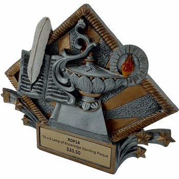 Store / Trophy Award / Resin Trophies / Resin Lamp of Knowledge Diamond Plate Resin Lamp of Knowledge Diamond Plate$37.30 Stand-up gold and silver resin award with space for gold engraving plate. Stand up rod included. Comes in gift box. Bulk Pricing 1 - 9 10 - 24 25 - 49 50 - 99 100 - 249 250 - 500 $37.30 $35.44 $33.57 $31.71 $29.84 $27.98 Engraving Instructions Resin Lamp of Knowledge Diamond Plate quantity Add to cart SKU: RDP14 Category: Resin Trophies Tags: KNOWLEDGE, LAMP, PLAQUE, RESIN Related products 9×12 Black Plaque w/ Floating Acrylic $138.35 View product Walnut Veneer Plaque $26.90 – $181.50Price range: $26.90 through $181.50 View product This product has multiple variants. The options may be chosen on the product page Rosewood Perpetual Plaque with individual plates $159.30 – $247.50Price range: $159.30 through $247.50 View product This product has multiple variants. The options may be chosen on the product page Rosewood Piano Finish Plaque $91.45 – $206.50Price range: $91.45 through $206.50 View product This product has multiple variants. The options may be chosen on the product page