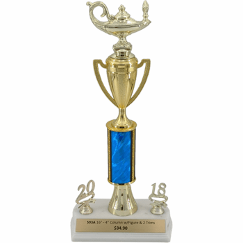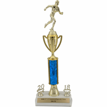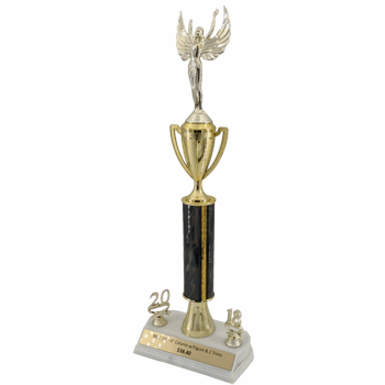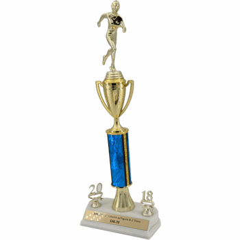 This trophy comes with your choice of a figure, column color. It also comes with 2 trim dates and a gold plate that is customizable with your engraving.